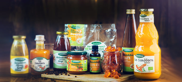 Das Spektrum reicht von Sanddorn- und Wildfrucht-Fruchtaufstrichen, „Sanddorn im Honig“, Sanddorn- und Frucht-Weinen bis zu verschiedenen Sanddorn-Säften. Hinzu kommen naturreine Produkte wie der Sanddorn-Muttersaft. Auch süße Köstlichkeiten wie vegane Sanddorn-Fruchtgummis oder Sanddorn-Schokolade zählen zum Angebot. Hinzu kommen herzhafte Sanddorn-Delikatessen.